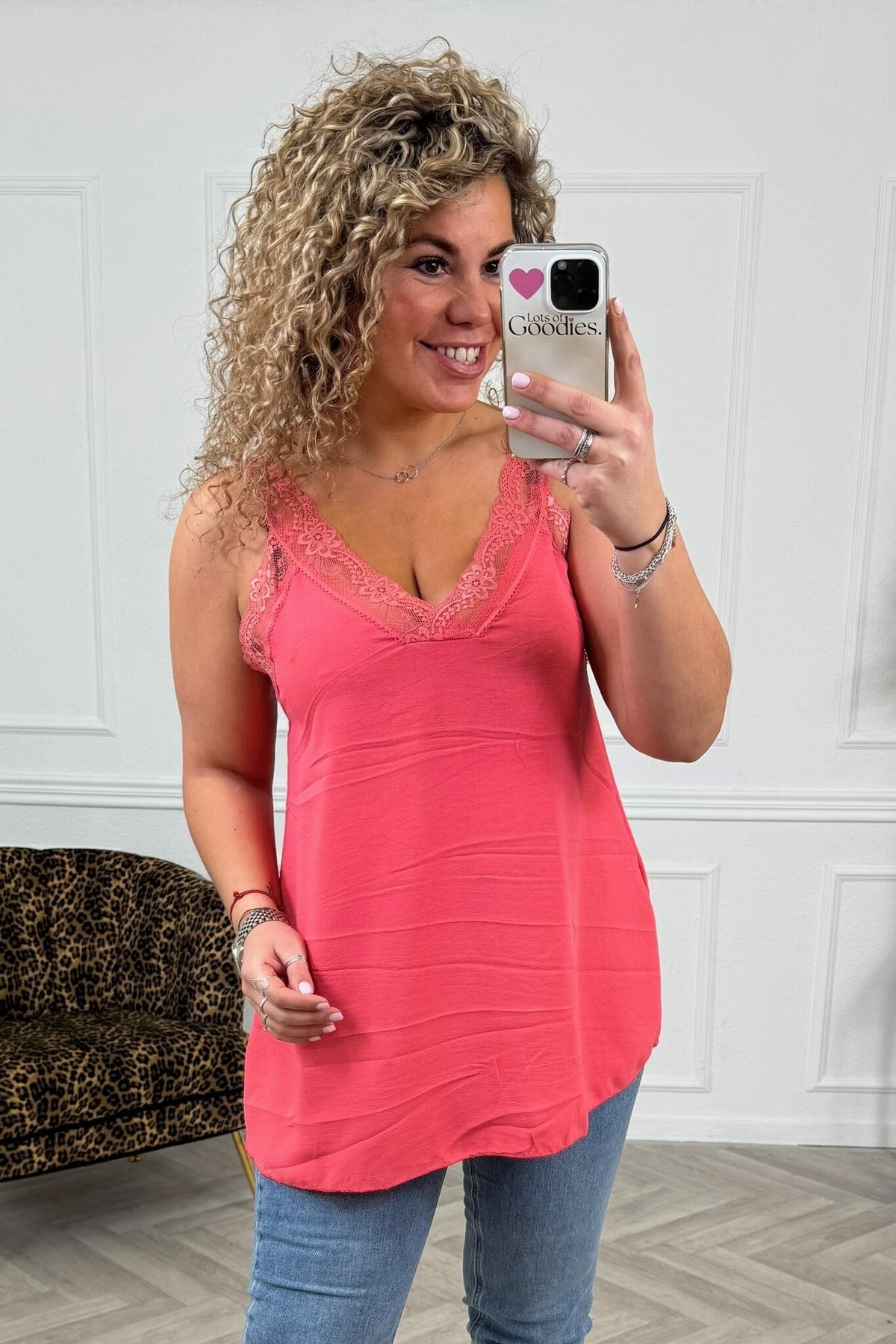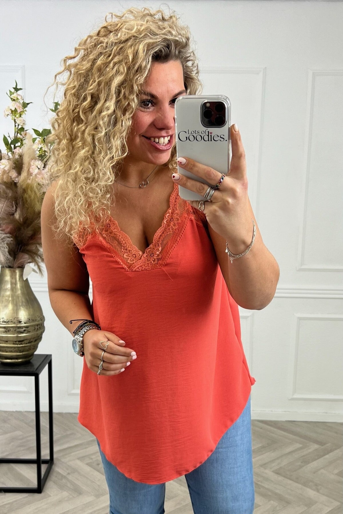 Curvy Sisi Lace Top - Coral